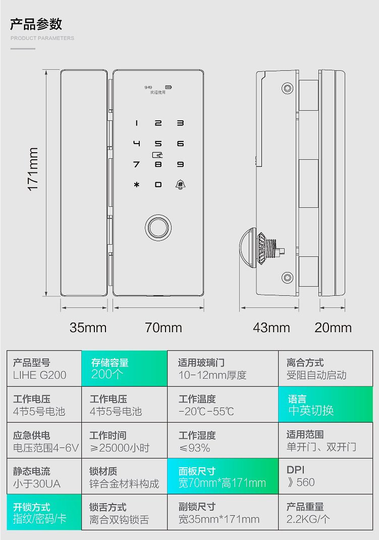 玻璃门指纹锁G200